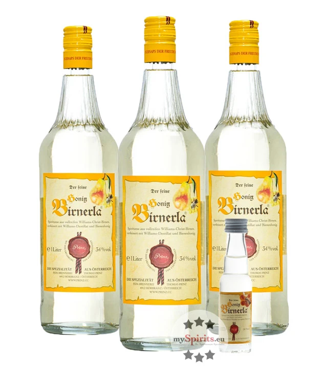 Bestellen Sie jetzt das 3er Set Honig Birnerla von Prinz inklusive gratis Miniatur bei mySpirits!