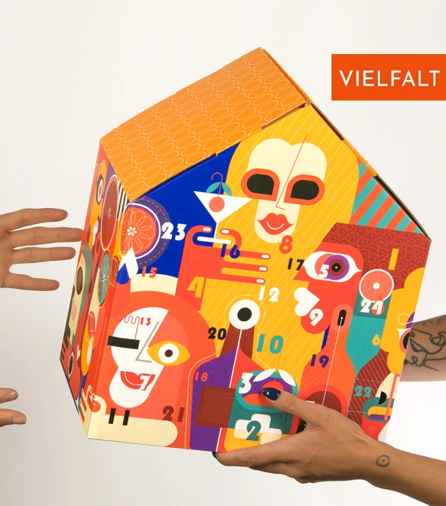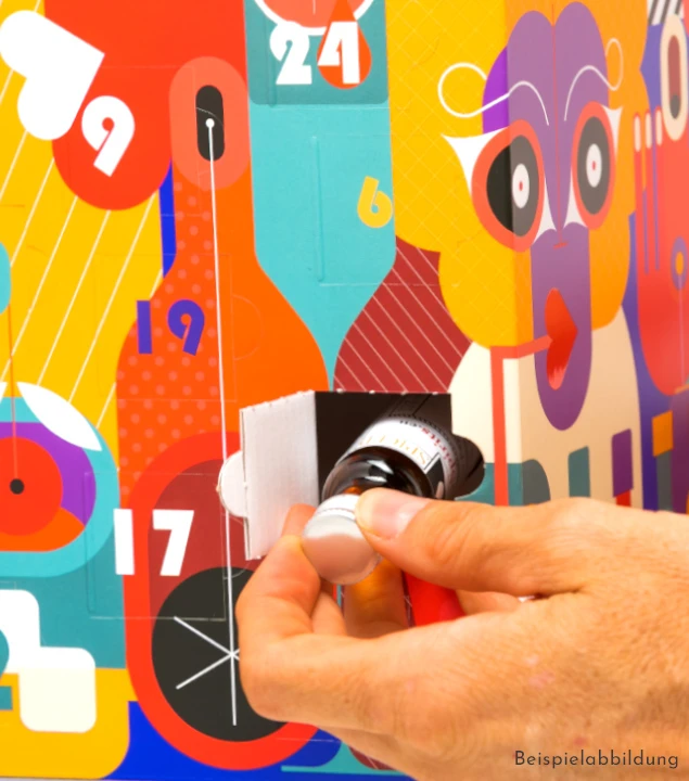 Bei identischem Inhalt ist der Adventskalender Spirituosen-Vielfalt in zwei verschiedenen limitierten Editionen erhältlich: Das farbenfrohe Design für die Art Edition hat der Grafik-Künstler Dan Jazzia aus Moldau exklusiv für mySpirits erstellt. Daneben gibt es auch die Christmas Edition mit winterlichen und weihnachtlichen Motiven.