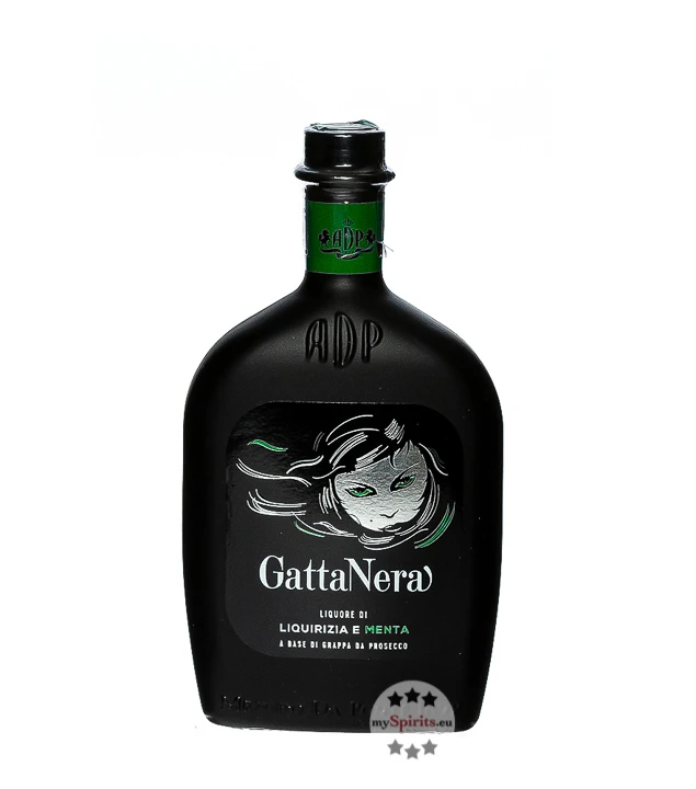 Mit Gatta Nera, auf Deutsch „schwarze Katze“, hat sich die bekannte italienische Grappa-Destillerie Andrea da Ponte eine außergewöhnliche Komposition einfallen lassen. Denn hergestellt wird der milde und zugleich kraftvolle Likör mit Prosecco-Grappa, Lakritz- und Pfefferminz-Extrakt aus Kalabrien. Lakritz und Pfefferminz dominieren Duft und Geschmack auf eine harmonisch ausbalancierte Weise. Süß, vollmundig und frisch mit spannenden Bitter-Akzenten ist Gatta Nera ein toller Begleiter für Abende mit Freunden.