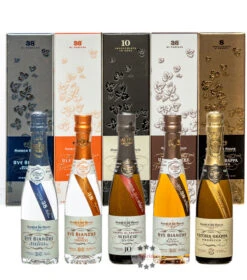 Schenken Sie erstklassige und hochwertige Traubenbrände & Grappas von Andrea Da Ponte. Seit 1892 setzt die Destillerie höchste Qualitätsstandards und gehört zudem zu den ältesten und besten Destillerien Italiens. Von blumig-floral bis hin zu sanften Holznoten im Geschmack – das Geschenkset 5 Eccellenze bietet eine tolle Auswahl verschiedener Andrea Da Ponte Grappas und Traubenbrände. Die Spirituosen sind jeweils in einer 0,05 Liter-Miniatur mit Geschenkkarton verpackt und zusammen in einer Geschenkverpackung gebündelt.