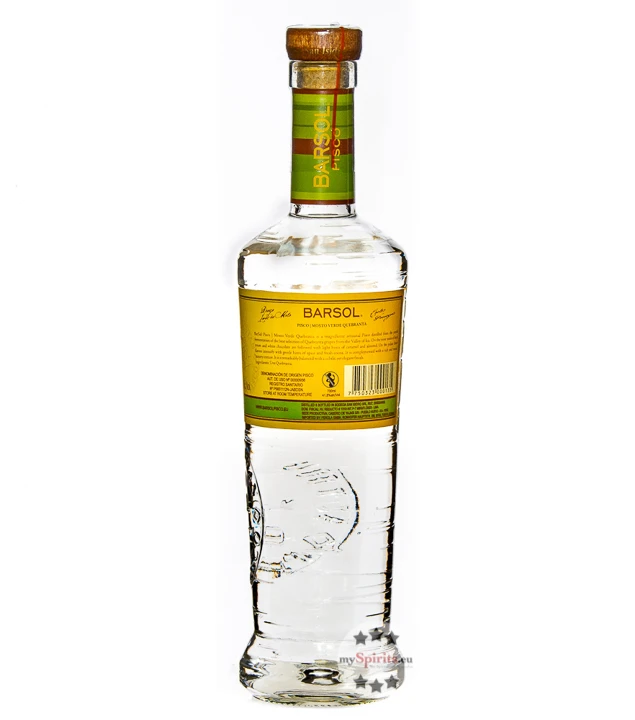 Pisco ist das Nationalgetränk von Peru, wo es im gleichnamigen Städtchen im Bundesstaat Ica bereits im 16. Jahrhundert hergestellt wurde. Die Qualität der Spirituose beginnt bei der sorgfältigen Auswahl der Trauben, die den Charakter entscheidend prägen. Mosto Verde, übersetzt „grüner Most“, ist eine eigene Kategorie des peruanischen Piscos. Pro Abfüllung wird im Vergleich zu einfachen Piscos die doppelte Menge an Trauben verwendet – eine kostspielige und aufwendige Herstellung. Als Basis des Barsol Mosto Verde Quebranta dient die partiell fermentierte, in Peru kultivierte Quebranta-Traube.