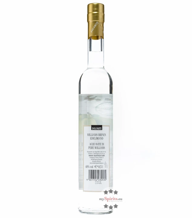 Jetzt Dolomiti Williams-Birnen Edelbrand in der Flasche mit 0,5l Inhalt bestellen und genießen!