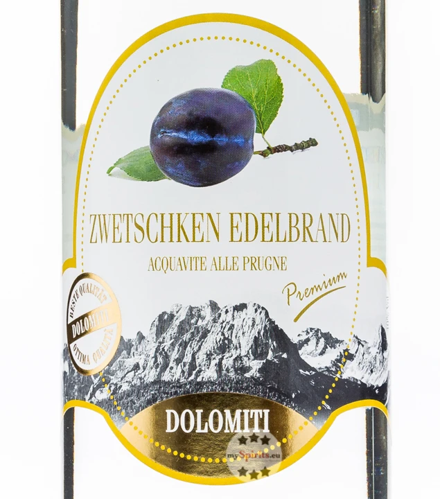 Jetzt Dolomiti: Zwetschken Edelbrand Premium in der 1,0 Liter-Flasche bestellen!