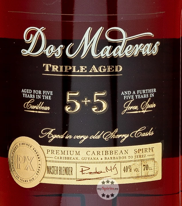 „Dos Maderas“ bedeutet auf Deutsch „zwei Hölzer“. Für Dos Maderas PX 5 + 5 Jahre scheint allerdings die Zahl 3 eine besondere Rolle zu spielen, denn genaugenommen lagert der Blend in drei Fasstypen und darf drei Länder sein Zuhause nennen: Die Destillate für den Blend werden im südamerikanischen Guyana und auf Barbados in der Karibik hergestellt. Dort reifen sie im tropischen Klima in ehemaligen Bourbon-Fässern. Anschließend wird der Spirit Drink nach Andalusien verschifft, wo im Traditionsunternehmen Bodegas Williams & Humbert in Jerez, der Heimat des Sherry, die Nachreifung in Sherry-Fässern im Solera-Verfahren stattfindet. Zunächst reift er drei Jahre in Palo-Corto-Sherryfässern (Don Cortados) und schließlich zwei weitere Jahre in Pedro-Ximénez-Fässern (Don Guido). Letzteres erklärt auch, wofür das Kürzel PX im Namen des Spirit Drinks auf Rum-Basis steht. Das Ergebnis dieses aufwendigen Herstellungs- und Reifeprozesses überzeugt nicht nur Rum-Kenner, sondern auch Liebhaber eines guten Sherrys.