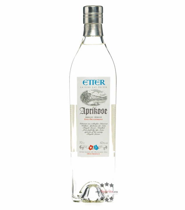 Mit höchster Qualität, sorgsam ausgewählten Früchten und traditionsreichem Handwerk, stellt die schweizer Destillerie Etter Aprikose Royale Luizet Edel-Fruchtbrand her. Aus saftigen, vollreifen Aprikosen aus dem Wallis wird in der Brennerei aus Zug das Aprikosendestillat hergestellt. Anschließend kommt Etter Aprikose Royale Luizet zur Reifung in Korbflaschen, um dort zum vollen Aroma aus Frucht- und Blumennoten zu reifen. Perfekt als Aperitif, zum Kaffee oder als Abschluss eines Menüs eignet sich der nach Aprikose, Mandel und Rose schmeckende Aprikosenbrand.