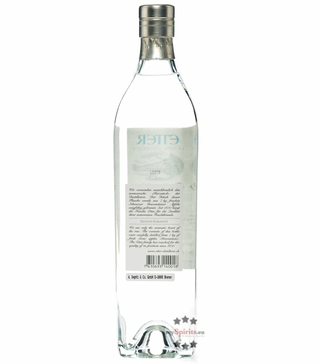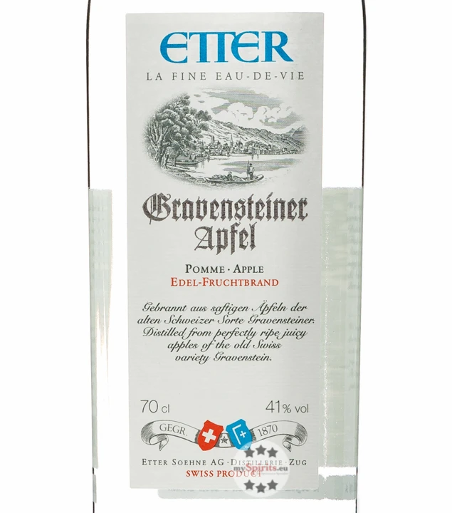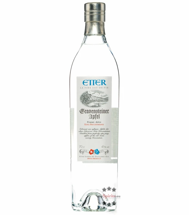 Schon seit 1870 widmet sich die Familie Etter der Herstellung feiner Fruchtspirituosen. Das familiengeführte Unternehmen achtet dabei stets auf heimische Früchte und hervorragende Qualität. Auch beim Etter Gravensteiner Apfel kommen nur vollreife Äpfel der Bodenseeregion Thurgau zur Einmaischung. Die Sorte der Gravensteiner Äpfel besticht dabei mit ihrer kleinen und deshalb umso vollmundigeren Frucht. Nach der Maische und natürlichen Vergärung, wird ausschließlich das „Herzstück“ des Destillats verwendet und als klarer Brand abgefüllt. Etter Gravensteiner Apfel besticht dabei mit einem ganz typischen, zarten Apfelgeschmack und eignet sich ideal als Apéro.