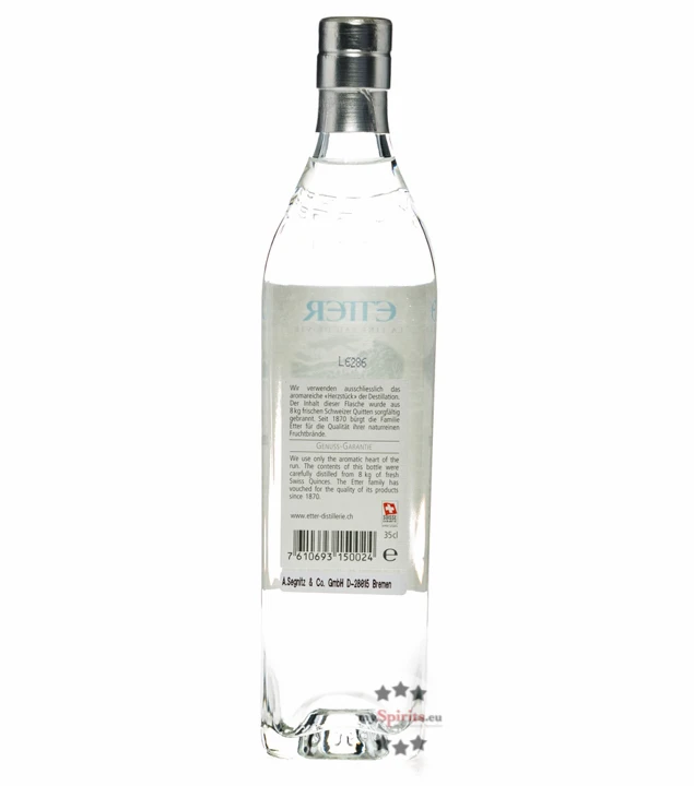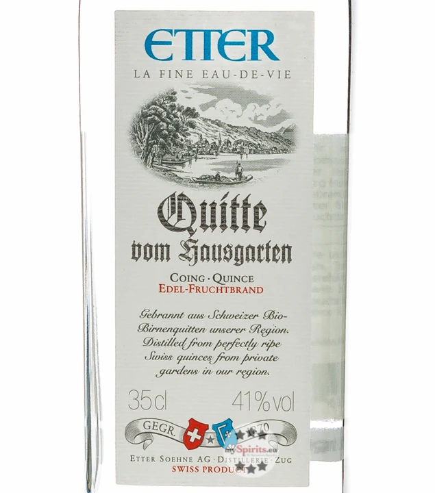 Ein Familienbetrieb hat für so manche Produktentstehung eine schöne Anekdote parat, so auch bei Etters Quitte vom Hausgarten. Die seit 1870 agierende Destillerie aus Zug in der Schweiz brennt zum größten Teil heimische Fruchtsorten. Als Christine Etter – Ehefrau des Seniorchefs – bemerkte, dass viele Gartenbesitzer ihre Quittenbäume fällen lassen wollten, weil Quitten schwer zu verarbeiten und roh nicht zu genießen sind, kam die Idee eines Quittenbrandes. Etter Quitte vom Hausgarten wird seitdem mit einem speziellen Einmaisch- und Destillationsverfahren hergestellt und ist zu einem beliebten zartfruchtigen Edelbrand der Destillerie Etter geworden.