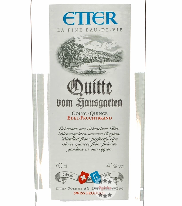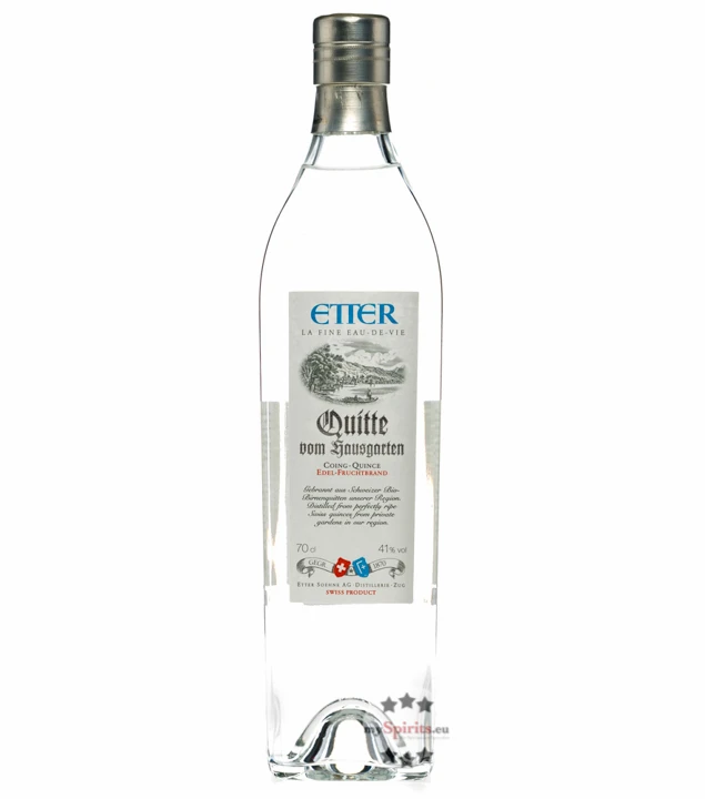 Heimische Früchte stets im Blick, hat Christine Etter – Ehefrau des Seniorchefs der Destillerie Etter – die Quitte als ideales Brenngut entdeckt. Da Quitten roh nicht genießbar und auch sonst recht schwer zu verarbeiten sind, kam die Seniorchefin der schweizer Brennerei auf den Fruchtbrand Etter Quitte vom Hausgarten als schöne Ergänzung des Produktsortiments. Gesammelt in Privatgärten der Region Zug werden die Birnenquitten von der Brennerei durch ein spezielles Einmaisch- und Destillationsverfahren schließlich zum Edelbrand Etter Quitte vom Hausgarten. Durch ihren fruchtigen Geschmack und ein leichtes Honigaroma ist Quitte vom Hausgarten eine echte Gaumenfreude.