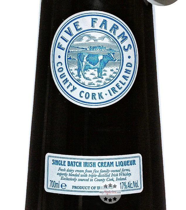 Im County Cork, der südlichsten Grafschaft in Irland, erblickt Five Farms Cream Likör das Licht der Welt. Sein Name geht zurück auf fünf traditionsreiche Familienbetriebe, welche die Sahne für den Likör in Einzelchargen produzieren. Die qualitativ hochwertige Sahne wird mit dreifach destilliertem, milden Irish Whiskey vermählt. Das Ergebnis schmeckt sowohl pur und eisgekühlt, ist aber auch ein toller Mixpartner für sahnig-cremige Drinks.