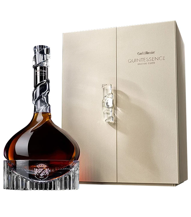 Für Grand Marnier Grande Cuvée Quintessence treffen zwei der traditionsreichsten Häuser ihrer Branche aufeinander: Grand Marnier und die Kristallglas-Manufaktur Baccarat. Für einen der exklusivsten Liköre wurde eigens von Baccarat ein Dekanter geschaffen, der die Eleganz des Produktes auch äußerlich unterstreicht: eine handgefertigte, tropfenförmige Flasche, die auf einem Glassockel platziert ist und durch einen Glasstopfen verschlossen wird. Diese luxuriöse Ausführung wird in einer edlen Schatulle mit Glasverschluss geliefert.