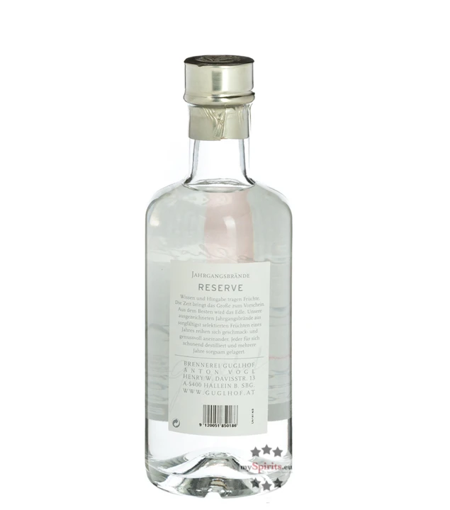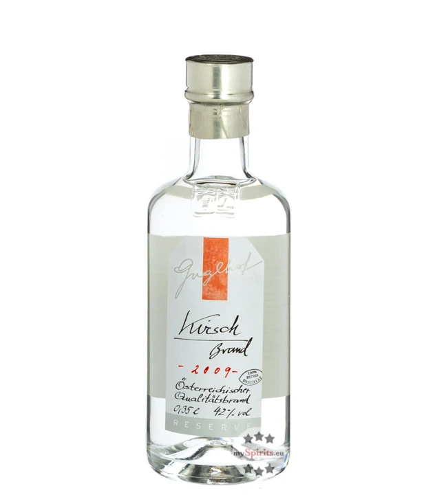 Der Guglhof Kirschbrand Reserve gehört zu den österreichischen Spitzenbränden, er steht strahlend klar im Glase – ist aromatisch im Duft nach tiefroten, vollreifen Kirschen – auf der Zunge ist er vollmundig, intensiv, charakterreich, dennoch wundervoll angenehm und fein – sein Finale ist fast endlos.