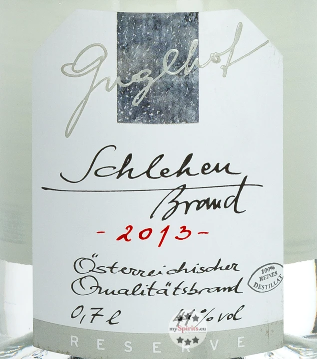 Der Guglhof Schlehenbrand ist ein Schlehenschnaps der besonderen Klasse. Trotz der 43% Vol. ist er richtig mild und rund. Der Körper des Brandes ist reif und schön ausbalanciert mit einer unglaublichen Dichte. Die reife dieses Jahrgangsbrandes macht das Destillat fast schon cremig am Gaumen.