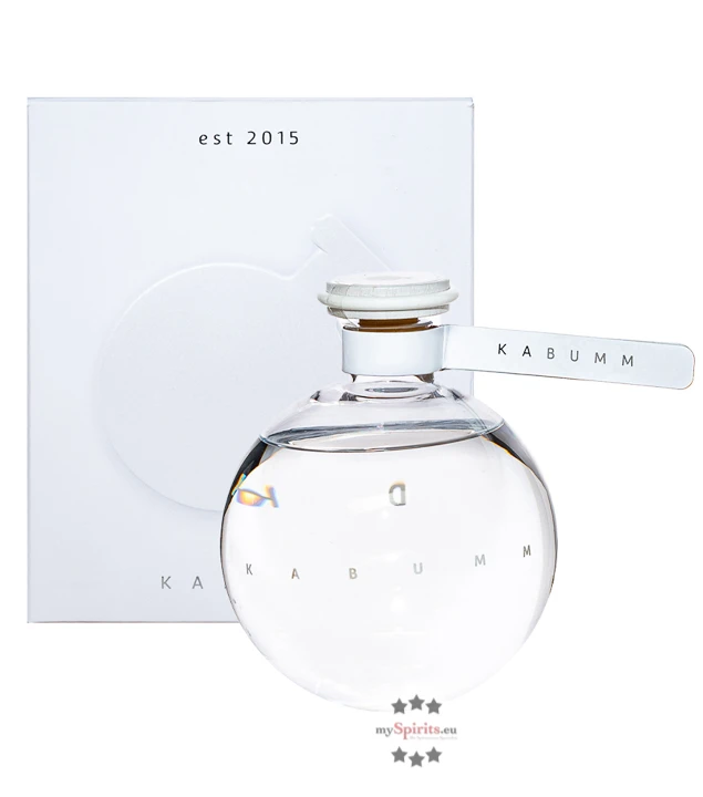 Die Basis von Kabumm Vodka bildet ein Zusammenspiel aus Mostviertler Nackt-Hafer und feinem Winterweizen. Hinzu kommt kristallklares Wasser, das aus der familieneigenen Quelle des Brenners Josef Farthofer stammt und durch den Granitgestein, aus dem es entspringt, besonders weich ist. Der verwendete, naturbelassene Nackt-Hafer enthält besonders viel Fett, das zusammen mit dem Winterweizen für den einmaligen Charakter von Kabumm Vodka sorgt. Beide Getreidesorten werden nach dem Vergären bis zu 30-mal destilliert. Im Edelstahlbehälter bekommt der Brand abschließend Ruhe, um alle Facetten zu entfalten, die ihn ausmachen. Mit Urgesteinswasser auf Trinkstärke gebracht, wandert es in die charaktervollen Flaschen in Form einer Bombe, die im südlichen Polen, wo eine lange Glashütten-Tradition zu Hause ist, mundgeblasen wurden.
