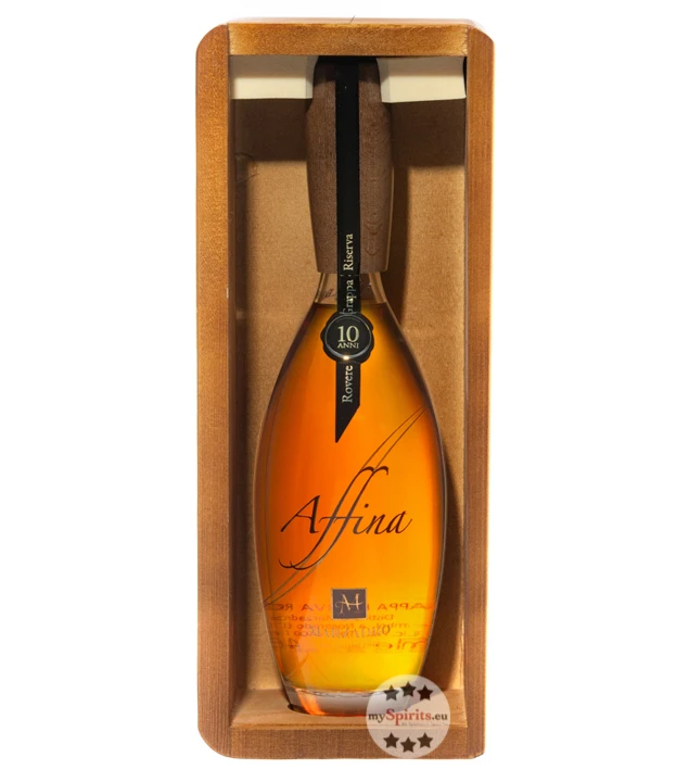 Der limitierte Premium-Grappa Affina Riserva Rovere durchlebt eine 10-jährige Reifung in Eichenholzfässern. Dadurch entwickelt sich die schöne Farbgebung und das charakteristische Nasenbild. Alle Sinne können am Genuss des Grappas von Marzadro teilnehmen. Sein kastanienrotes Aussehen bietet ein einmaliges Farbspiel, welches durch die formschöne 0,35 Liter-Flasche bewundert werden kann. Schon beim Öffnen der Flasche betört Grappa Affina Riserva Rovere die Nase mit einem floralen Bukett. Die blumigen Töne verschmelzen beim Nosing mit Eindrücken von Vanille, Pflaumen und eingelegtem Obst.