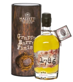 Die Fässer für die Lagerung des Grappa kommen aus der Destillerie Carpano in Turin. Hier legte der Italiener Antonio Benedetto Carpano im Jahr 1786 die Weichen für den heute weltweit beliebten Wermut, in dem er sich an der Verblendung von Gewürzen und Kräutern mit Moscato-Wein versuchte. Rund 230 Jahre später wurde aus den fruchtigen und süßen Moscato Trestern der erste Grappa hergestellt. Mazzetti verbindet heute diese beiden Produkte in ihrem Grappa 1786, denn hierzu wird Moscato-Grappa nach der Fassreifung von mindestens zwölf Monaten noch in ehemaligen Vermouth-Fässern nachgereift.