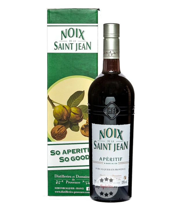 Noix de la Saint Jean ist ein feiner, traditioneller Walnuss-Aperitif auf Basis von französischem Rotwein aus der Destillerie Forcalquier im Herzen der Provence. Die Spirituose blickt in ihrer Heimat auf eine lange Tradition zurück, denn das Departement Le Dauphiné ist seit dem 11. Jahrhundert bekannt für den Anbau von Nüssen und der weinbasierte Aperitif ist mit vielen Mythen und Legenden der Region verbunden. Die Walnüsse werden traditionell am 24. Juni, dem Namenstag von Saint Jean, dem heiligen Johannes, geerntet. Sie sind dann noch nicht reif, was wichtig ist, damit die Schalen nicht zu hart sind. Für die Herstellung des Noix Aperitifs werden frische Walnüssen und getrocknete, grüne Walnussschalen für sechs bis zwölf Monate in kräftigem Rotwein aus Frankreich mazeriert. Anschließend werden Gewürzmazerate von Zimt, Muskatnuss und Nelken, sowie Zucker ergänzt, was dem feinen Aperitif Nuancen von Lebkuchen verleiht.