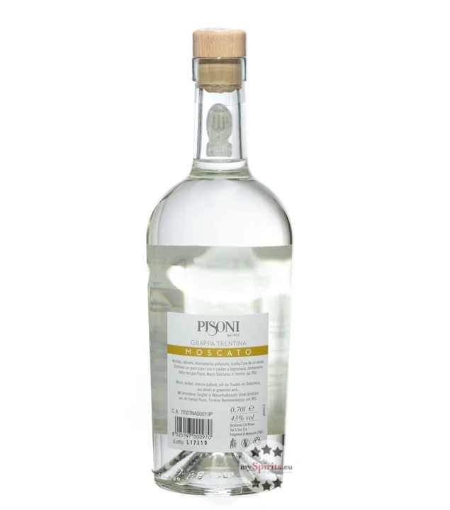 Kaufen Sie jetzt sanften Pisoni Moscato Grappa mit 43 % Vol. bei mySpirits.eu!