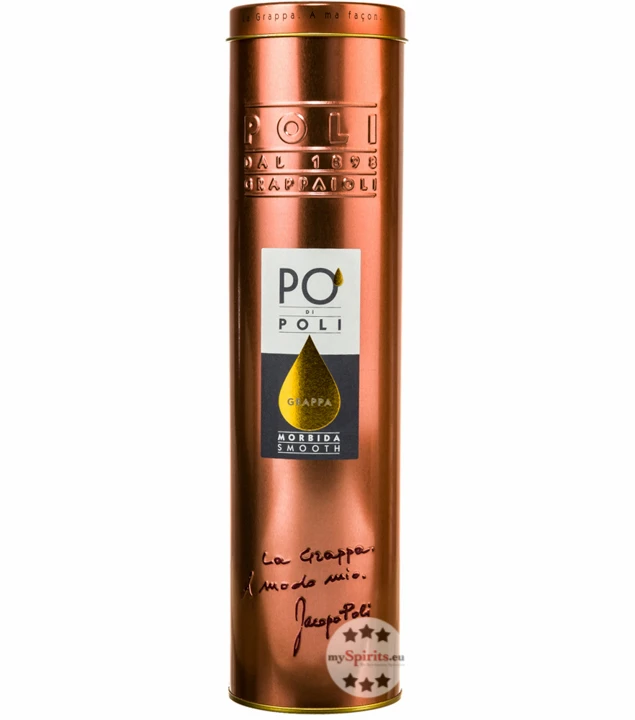 Die Reihe der Po’Di Poli Grappas der italienischen Destillerie Poli aus dem Veneto wird aus Trestern aus Rebsorten der gleichen Familie destilliert. Dies ermöglicht es den Brennern, den unverwechselbaren Geschmack der Ursprungsreben beizubehalten und einen ganz besonders harmonischen Cuvée zu brennen. Der weiche Grappa Po’Di Poli Morbida behält die typischen Aromen des Muskateller bei, dessen Trester von Moscato Fior d’Arancio und Weißem Muskateller stammen. Diese werden ergänzt durch Orangenblüten und Zitrusnoten im Duft.