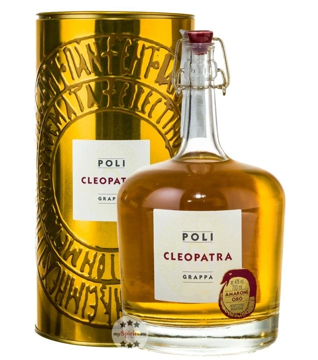 Benannt ist die Produktlinie nicht wie man vermuten könnte nach der Pharaonin Kleopatra, sondern nach einem Alchemisten des antiken Ägyptens, der einen Alambic names Crysopea zur Herstellung von Gold gebaut hatte. Ein paar Jahrhunderte später, Anfang des 21. Jahrhunderts versuchte sich die Destillerie Poli an der Verwandlung von Trester zu flüssigem Gold. Der kostbare Poli Grappa Cleopatra Amarone Oro gehört zu diesem alchemistischen Experiment und überzeugt vollends in Duft und Geschmack.