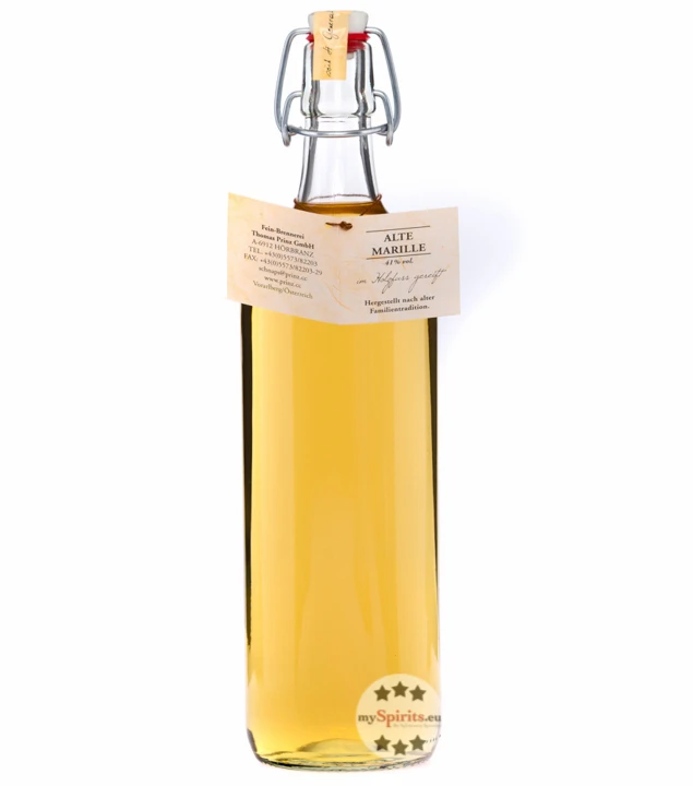 Für die Alte Marille werden bei Prinz nur die besten, vollreifen und schön saftigen Marillen schonend destilliert. Der herrlich intensive Geschmack der sonnenverwöhnten Früchte bleibt dank der niedrigen Temperaturen beim Brennvorgang erhalten, darum können auch die feinsten Nuancen der für Österreich typischen Marille sofort erschnuppert und erschmeckt werden. Die natürliche Fruchtsüße der Marillen ermöglicht eine kontrollierte Gärung der Maische, bei welcher der Alkohol aus dem Zucker entsteht. Schließlich wird der feine Tropfen in wunderschönen Kupferbrennkesseln doppelt destilliert. Erst in der zweiten Destillation entsteht der so genannte Feinbrand, wobei ausschließlich der qualitativ besonders hochwertige Mittellauf, das „Herzstück“ des Brandes, abgetrennt und weiter verarbeitet wird.