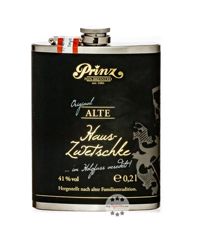 Bestellen Sie jetzt Prinz Alte Haus-Zwetschke Schnaps mit dem unverwechselbar milden Geschmack im 0,2 Liter Edelstahl-Flachmann bei mySpirits!