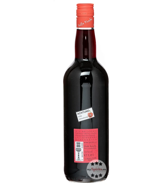 Die Heiße Kirsche, von der Prinz Feinbrennerei in Vorarlberg besticht durch feine fruchtige Aromen wie süße Kirsche, zarte Bittermandelnoten und einen Hauch Marzipantöne. Im Geschmack wunderbar harmonisch und ausgewogen, mit kräftigem Fruchtaroma und der Süße von Vanille und Marzipan.