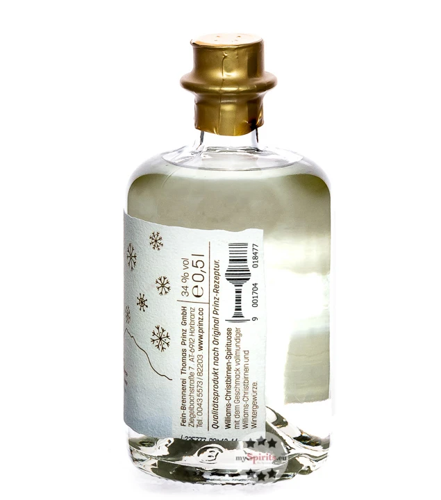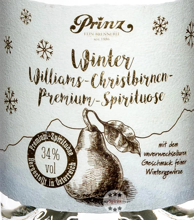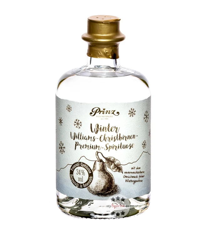 Mit Prinz Winter Williams-Christbirne kommen Sie gut durch die kalte Jahreszeit. Die traditionsreiche Brennerei aus Hörbranz am Bodensee lässt sich jedes Jahr neue Kreationen einfallen, um dem Winter so richtig einzuheizen. Ob bei einer ausgelassenen Après-Ski Party oder gemütlich vor dem Kaminfeuer, der Geschmack erlesener Wintergewürze wie Zimt, Nelken und Kardamom lässt Sie die Kälte schnell vergessen. Beim hochwertigen Winter Williams-Christbirne darf auch das Auge am Genuss teilhaben, denn die hübsche Flasche mit einer aufgezeichneten Birne vor einer Bergkulisse, Schneeflocken und elegant anmutendem goldenen Schriftzug macht in jeder Hausbar eine gute Figur. Auch wenn Sie noch auf der Suche nach einem feinen Weihnachtsgeschenk sind, ist Winter Williams-Christbirnen-Schnaps, der mit besten Destillat von Williamsbirnen hergestellt wird, eine gute Wahl.