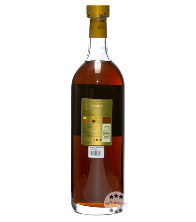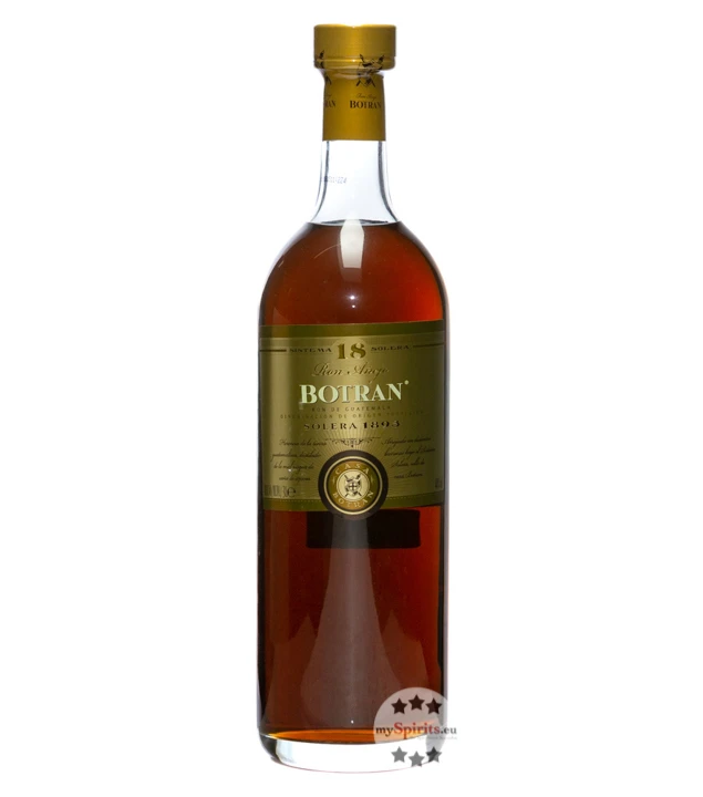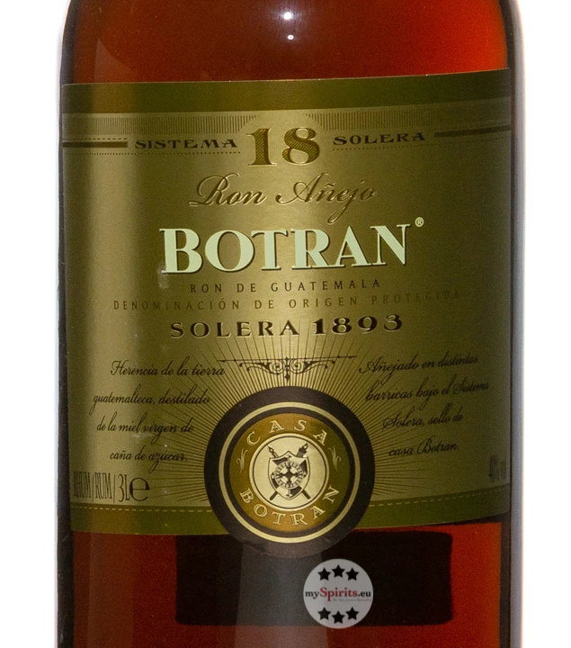 In der Produktfamilie von Ron Botran ist dieser 18 Jahre im Solera-Verfahren gelagerte Rum die Krönung. Nach guatemaltekischer Tradition nicht aus Melasse oder Zuckerrohrsaft, sondern aus speziellem Zuckerrohrsirup hergestellt, trägt nach der Destillation vor allem die Höhenluft auf über 2300 Metern über dem Meer zu einer schonenden Reifung bei. In Duft und Geschmack entfalten sowohl würzigere Noten aus der Holzfasslagerung wie Pfeffer, Muskat und Kakao ihre Wirkung, als auch Facetten von Vanille, Trockenfrüchten, süßen Früchten und Orangenschale.