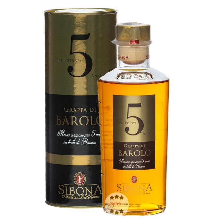 Die Grundlage des Sibona Grappa di Barolo 5 Anni ist Barolotrester aus den Hügellandschaften der Langhe und des Roero. Der Barolo, ein trockener Rotwein, gehört zu den meistgeschätzten italienischen Rotweinen und bildet somit die beste Grundlage für hochwertigen Grappa. Dieser entsteht aus dem für Barolo verwendeten Nebbiolo-Trester im kontinuierlichen Brennverfahren, während dem immer wieder frischer Trester zugegeben wird. Das Destillat wird anschließend in Stahltanks gelagert und zuletzt fünf Jahre in Eichenholzfässern zur vollen Reife gebracht.