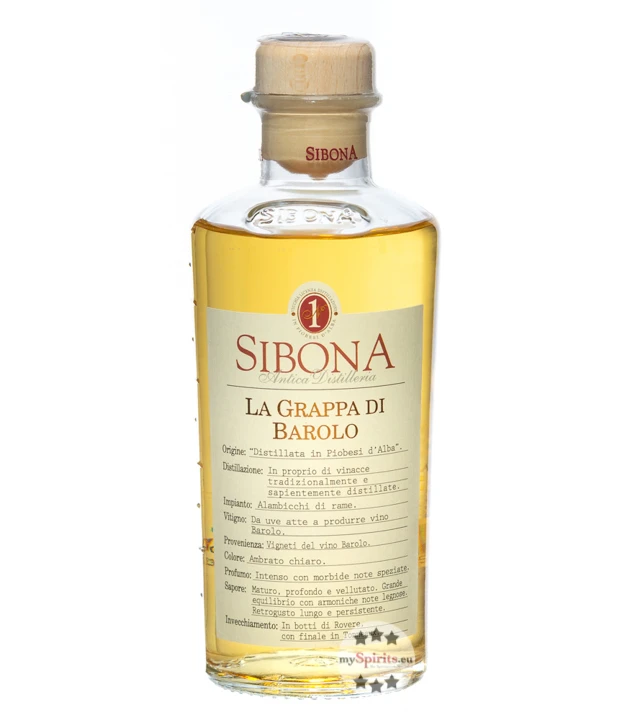 Die Sibona Antica Distilleria bietet erstklassige Grappas, für den Einsteiger ebenso, wie für den anspruchsvollen Kenner. Wer noch wenig Erfahrung im Grappa-Bereich hat, aber dennoch nicht auf ein hochqualitatives Produkt verzichten möchte, wird vom Sibona Grappa di Barolo nicht enttäuscht werden. In Eichenholzfässern gereift, entfaltet er seine holzig-würzigen Noten, die dennoch weich hervortreten. Der langanhaltende Abgang überrascht mit fruchtig-süßen Nuancen – ein Verweis auf die erstklassigen Barolo-Trauben, aus deren Trester dieser Grappa gewonnen wird.