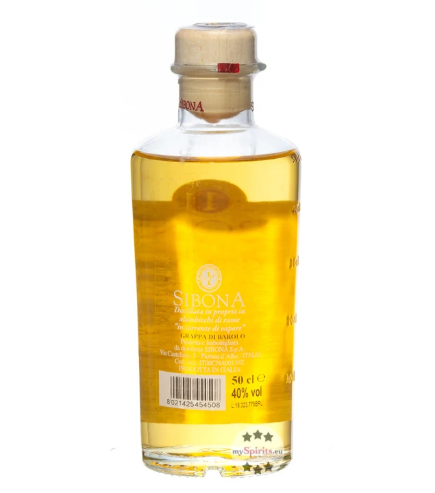 Rotwein der Sorte Barolo, der aus der Rebsorte Nebbiolo hergestellt wird, ist einer der beliebtesten und hochwertigsten trockenen Rotweine Italiens – ein qualitativer Standard, der sich auch im Grappa Barolo von Sibona wiederfindet, der auf Basis von Barolo-Trestern hergestellt wird. Diese werden für den Grappa di Barolo mit Hilfe eines kontinuierlichen Brennverfahrens verarbeitet und das Destillat schließlich mehrere Jahre in kleinen Eichenholz- und Barriquefässern zur vollen Reife gebracht.
