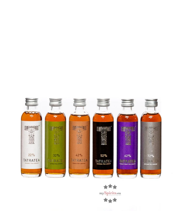 Das Tatratea Miniaturset vereint die besten Liköre auf Tee-Basis der Karloff Distillery aus der Slowakei in der praktischen 0,04 Liter-Probiergröße und ist auch eine ausgefallene Geschenkidee. Im slowakischen Tatra Gebirge blicken Tee-Liköre auf eine lange Tradition zurück. Das familiengeführte Unternehmen Karloff interpretiert diese Tradition neu und kreiert einzigartige Liköre, die ideal für den puren Genuss, in Longdrinks oder kreativen Cocktails geeignet sind. Das Probierset besteht aus 6 verschiedenen Geschmacksrichtungen: