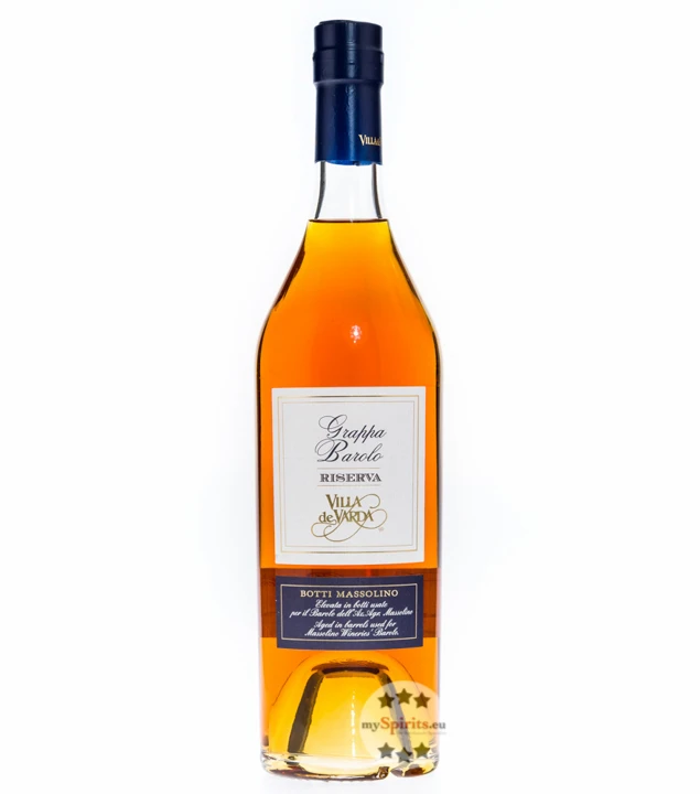 Die Destillerie Villa de Varda stellt seit den Anfängen des 19. Jahrhunderts im familiengeführten Betrieb feine Grappas her, die im hauseigenen Kellergewölbe gebrannt und gelagert werden. Die Lagerung des Villa de Varda Grappa Barolo Riserva Gran Cru erfolgt dabei in Holzfässern, die für den Barolo-Wein der Cantina Massolino verwendet werden. Diese spezielle Barriquelagerung verleiht Villa de Varda Grappa Barolo Riserva Gran Cru seinen besonders weichen, harmonischen Geschmack. Der bernsteinfarbene Villa de Varda Grappa Barolo Riserva Gran Cru überzeugt mit Blüten- und Beerennoten, die von Gerüchen nach Vanille, Orangenschalen und Honig umgarnt werden.