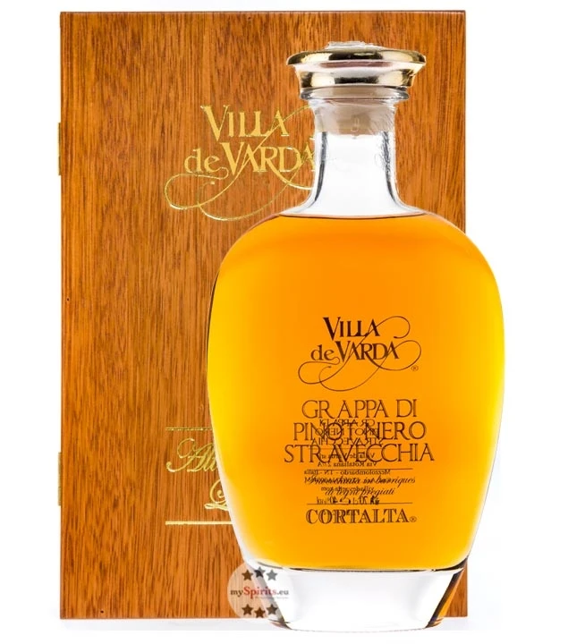 Die Destillerie Villa de Varda setzt seit der Firmengründung im frühen 19. Jahrhundert auf beste Zutaten für ihre Grappas. Verwendet werden die Trester – also Pressrückstände aus Trauben – aus den umliegenden Rebengärten, die oft als die schönsten Europas bezeichnet werden. Villa de Varda Grappa Pinot Nero Stravecchia-Cortalta ist eines der Highlights der Produktreihe von Villa de Varda und gehört zur Top Selektion an holzfassgelagerten Grappas. Villa de Varda Grappa Pinot Nero Stravecchia-Cortalta wird aus sortenreinen Trestern der Rebsorte Pinot Nero destilliert und in besonderen Holzfässern gelagert.