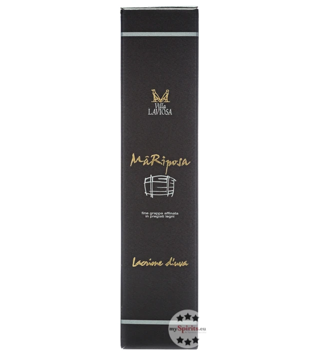 Einen poetischen Namen haben die Brennmeister von Villa Laviosa diesem Grappa Riserva gegeben. Die Tränen der Traube – Lacrime d’Uva – steht auf dem Flaschenetikett des Grappa Mariposa. 12 Monate lang reift der Brand aus Trestern der Sorten Amarone und Muskateller in kleinen Barriques aus Kirschholz. Fruchtig, intensiv aromatisch und würzig ist das Resultat dieser Lagerung – der harmonische Geschmack legt sich samtweich über die Zunge.