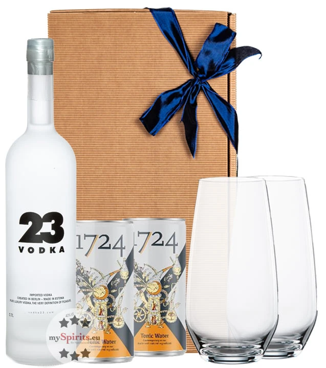 Vodka Geschenkset mit Vodka 23, 1724 Tonic & 2 Gläsern